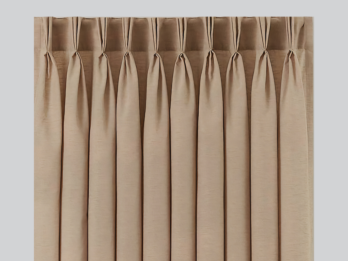 Este tipo de acabado es perfecto para crear un estilo elegante pero a la vez clásico. Su diseño consiste en la confección de uno, dos o tres pliegues. El anclaje usado para este tipo de confección se coloca directamente sobre la tela asegurando que el gancho no se caiga y pueda brindarle diferentes alturas a los tejidos.