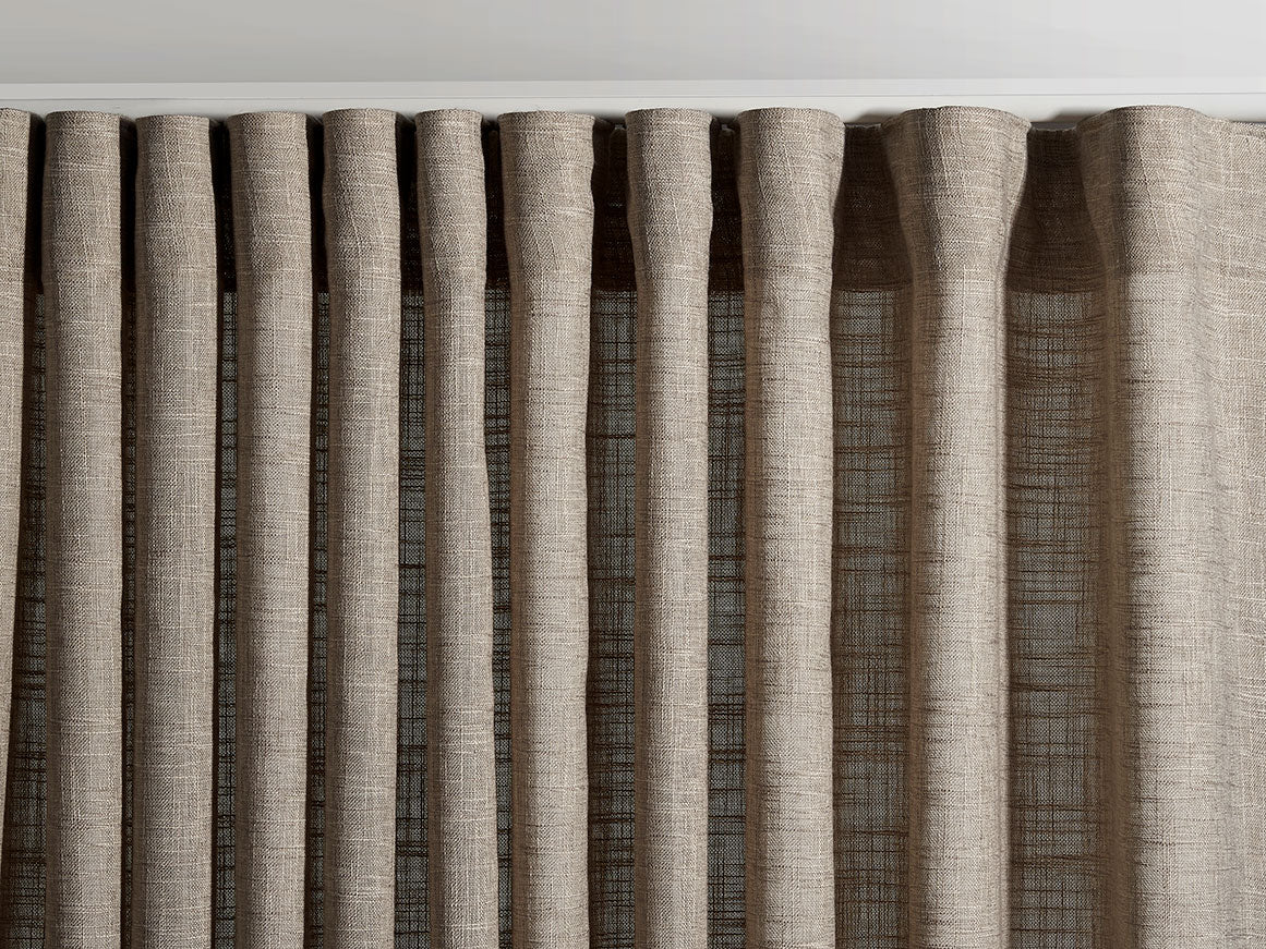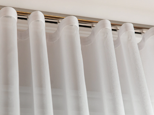 Suele utilizarse en estancias amplias aportando frescura y modernidad al interior de las habitaciones. Pueden usarse mediante broches o ganchos. El ondulado con gancho es el más recomendado para cortinas motorizadas, ya que sostiene mejor la tela al momento en el que se mueve la cortina, en caso de que desees motorizarla.